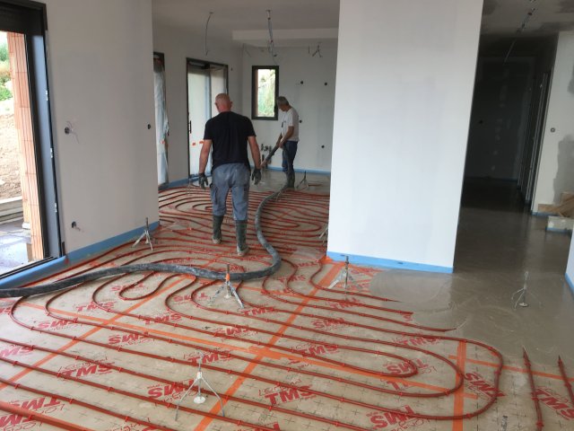 Préparation coulage chape plancher chauffant
